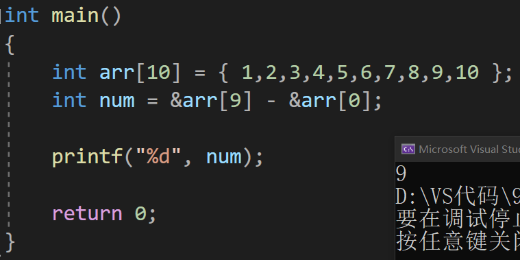 指针 - 指针 = 指针与指针之间 的 元素个数
