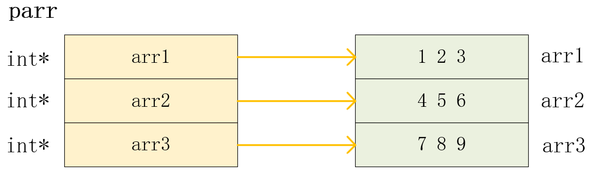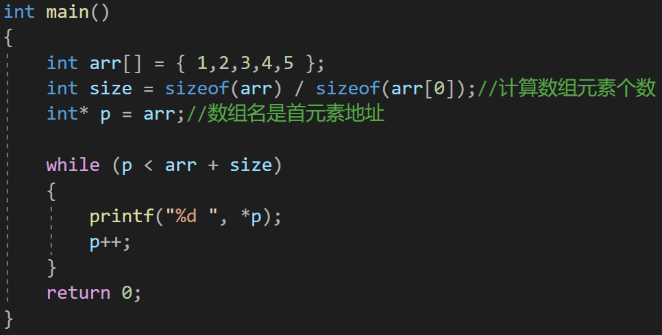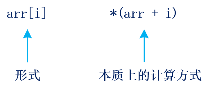 所以 p + i 计算的是数组 arr 下标为 i 的地址,那么,就可以直接通过指针来访问数组