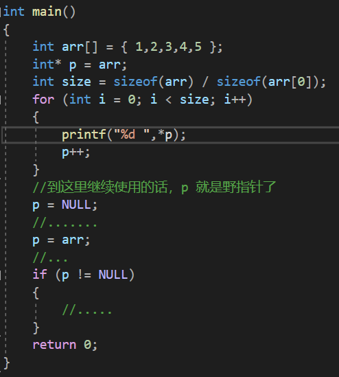 当指针变量指向⼀块区域的时候,可以通过指针访问该区域,当后期不再使用这个指针的时候,就把该指针置为 NULL
