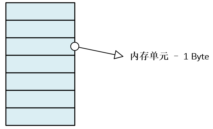 其实也是把内存划分为⼀个个的内存单元 ,每个内存单元的大小取 1 个字节。