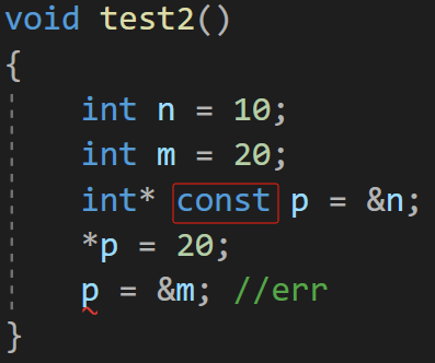 当 const 放在 * 左边时,*p 无法修改, p 可以被修改