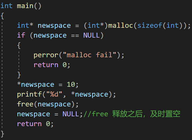 释放内存空间后,将指针置为NULL 是一个良好的编程习惯