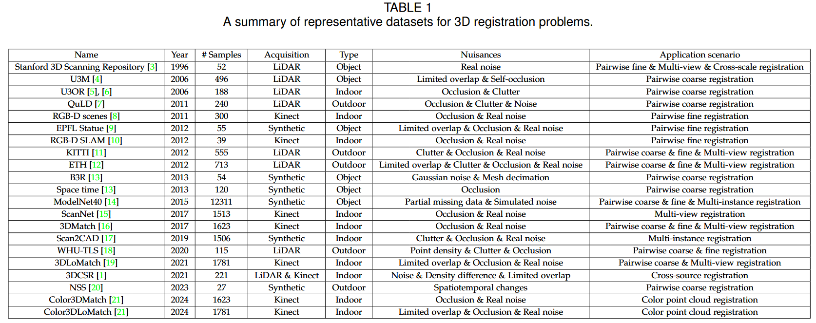 1\] X. Huang, G. Mei, J. Zhang, and R. Abbas, "A comprehensive survey on point cloud registration," arXiv, 2021. \[2\] M. Lyu, J. Yang, Z. Qi, R. Xu, and J. Liu, "Rigid pairwise 3d point cloud registration: a survey," PR, p. 110408, 2024