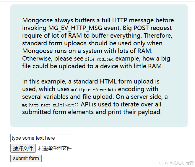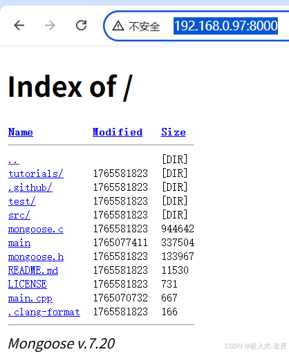 最近正好有一个需求,需要在arm linux板子上起一个web server。本着轻巧的原则,在github上面找了一下,发现了mongoose这个软件。软件本身很小,就一个h文件,一个c文件,完全可以拿过来处理一下。如果只是配置类的处理,或者是stm32 mcu之类的软件,那么也可以使用这类库。