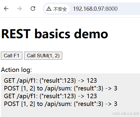 看到web server之后,如果pc和板子是用网线直连的话,就可以直接打开浏览器测试。比如,这样输入http地址,http://192.168.0.97:8000/