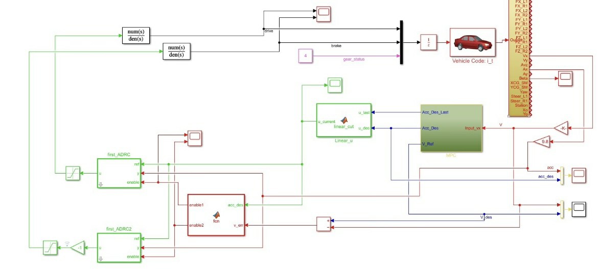 这种基于MPC和ADRC的车速控制算法的一大亮点是可直接用于代码生成,并且能够做实车试验。通过代码生成工具,可以将上述算法转化为适用于车载控制器的代码。在实车试验中,工程师们可以收集实际行驶数据,进一步优化算法参数,确保在各种路况和驾驶场景下都能实现稳定且精准的车速控制。