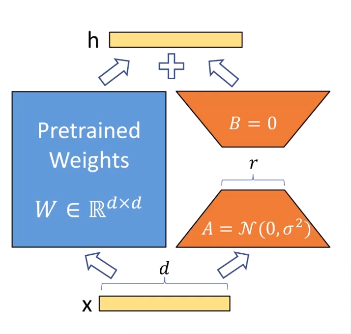 - LoRA:在固定预训练大模型本身的参数基础上,在保留自注意力模块中原始权重矩阵的基础上,对权重矩阵进行低秩分解,训练过程中只更新低秩部分的参数。