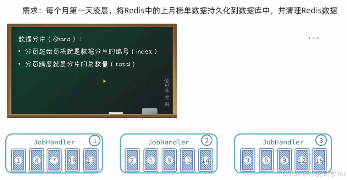 这里还借助了xxljob的分片广播,主要应用于多实例部署时,可以实现多实例分片,类似于取模运算的思路,每个实例负责不同的部分。