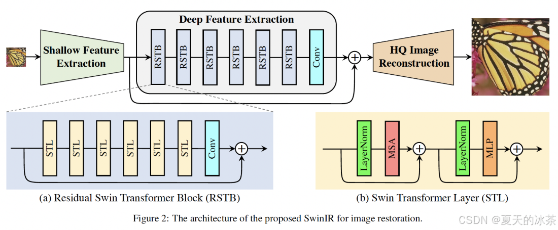 这里面的OLAB模块有面有一个OCA注意力,我找了一下,这个应该指的是Overlapping Cross Attention,然后大家猜猜我找到了什么东西,如下图这是SwinIR的工作图: