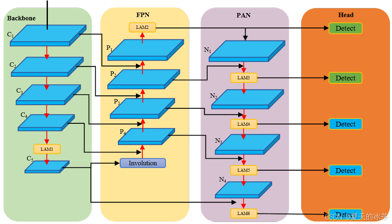 - [[-1, 6], 1, Concat, [1]] # cat backbone P4 (注意索引还是为6,不是与LAM层相拼接)