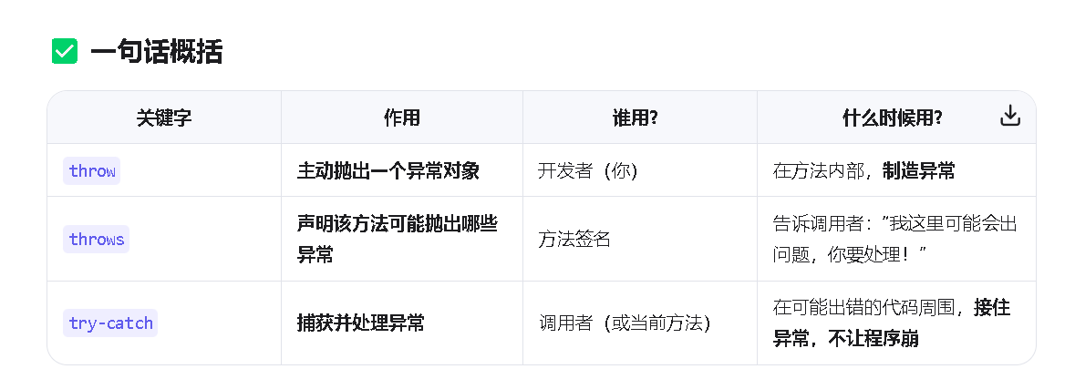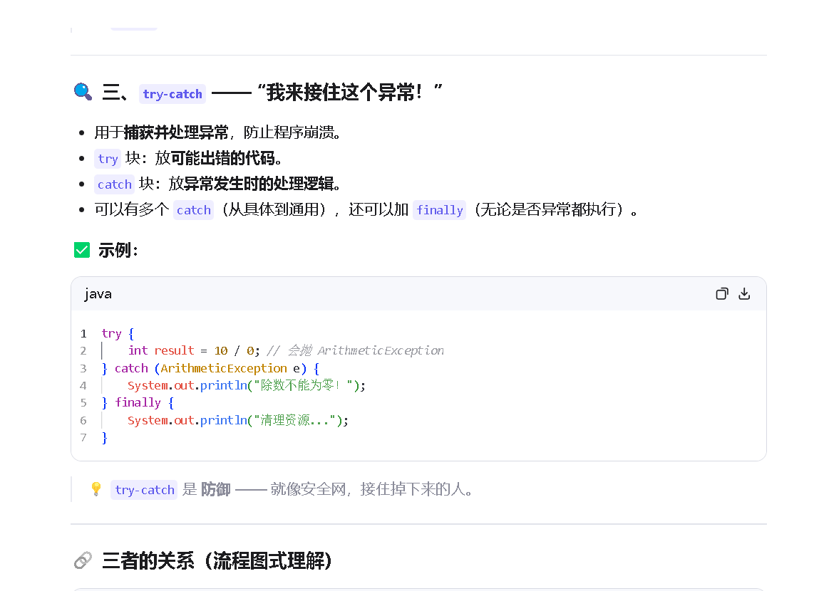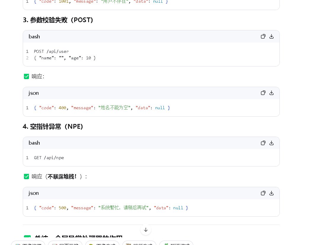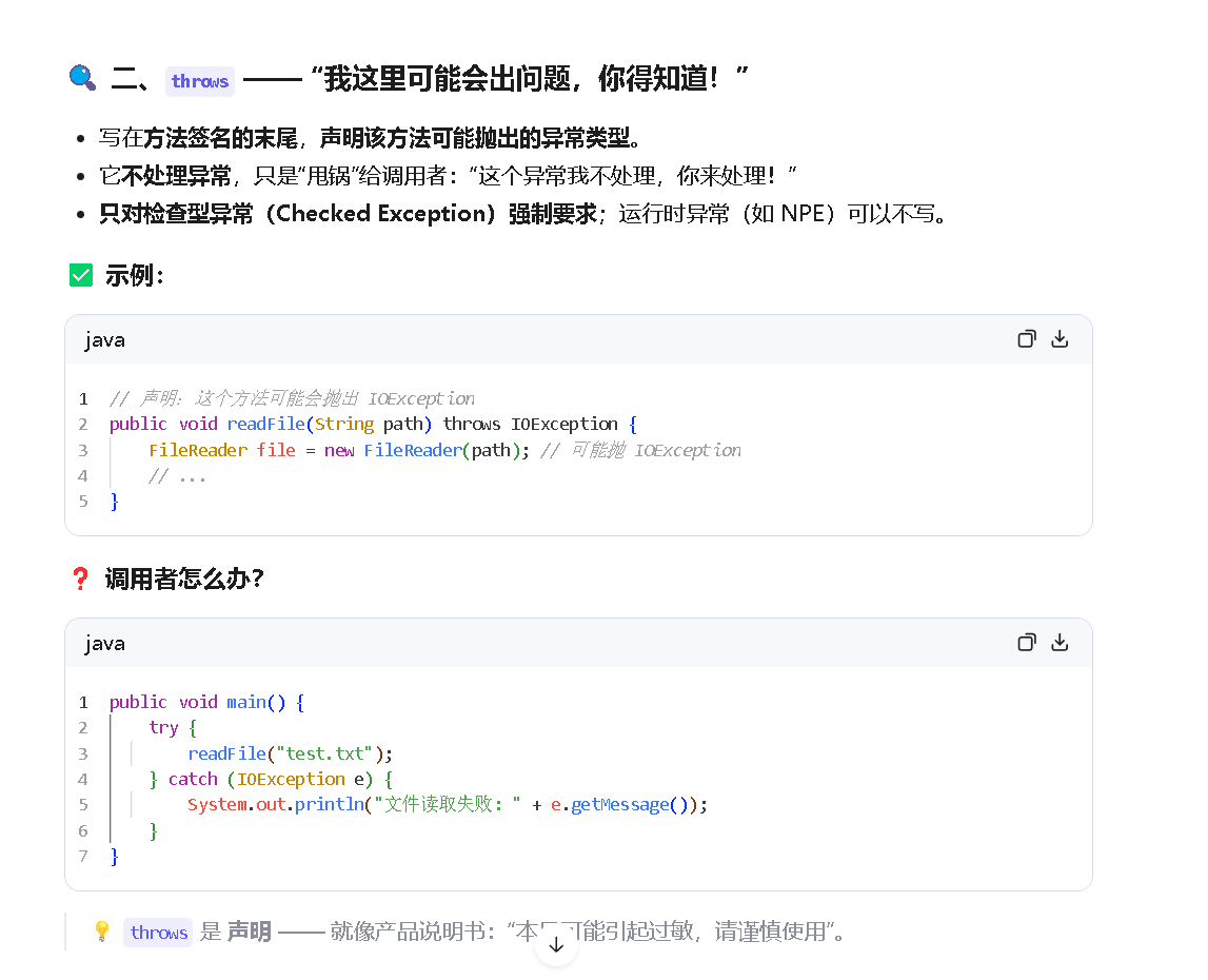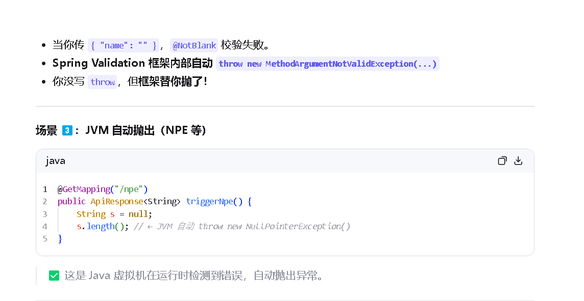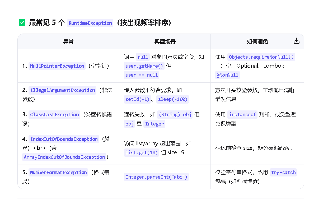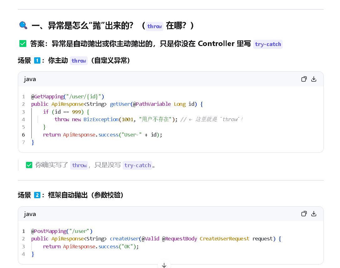 💡 在 Web 接口开发中,我们主要关注的是 Unchecked Exception 和部分 Checked Exception(如数据库异常、网络调用异常)。