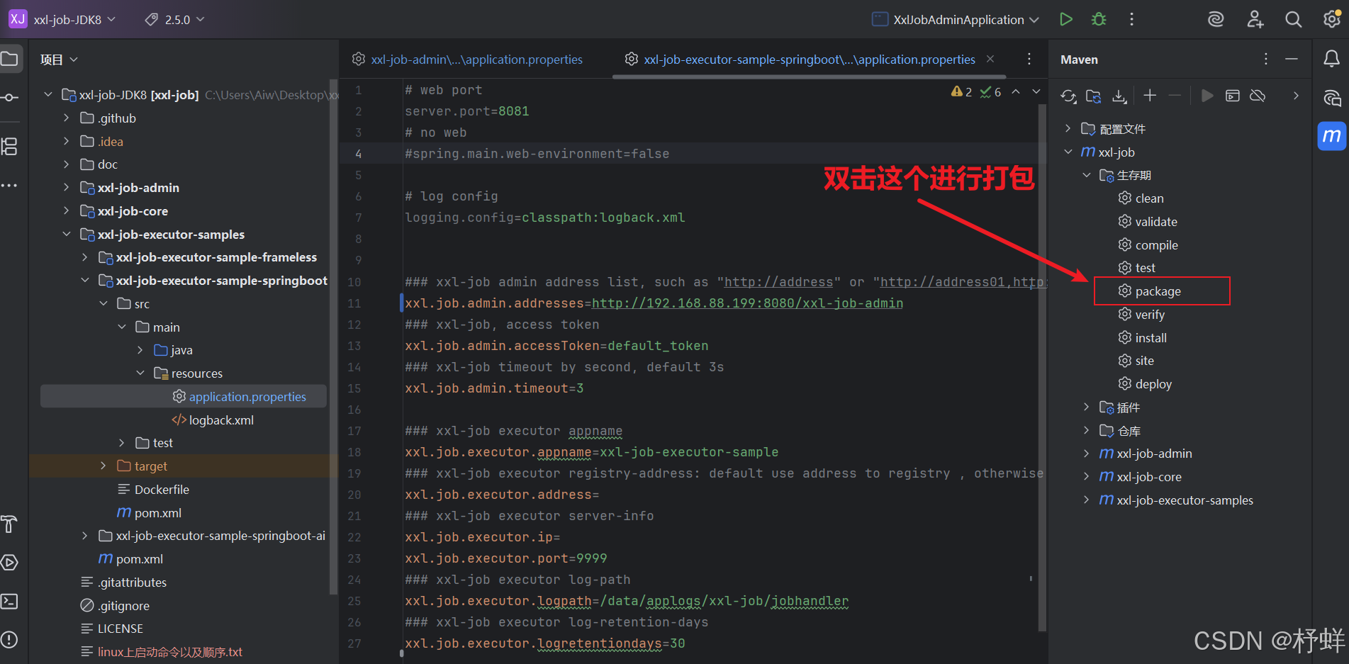 打开xxl-job-executor-samples/xxl-job-executor-sample-springboot/src/main/resources/application.properties,需修改如下配置信息等。