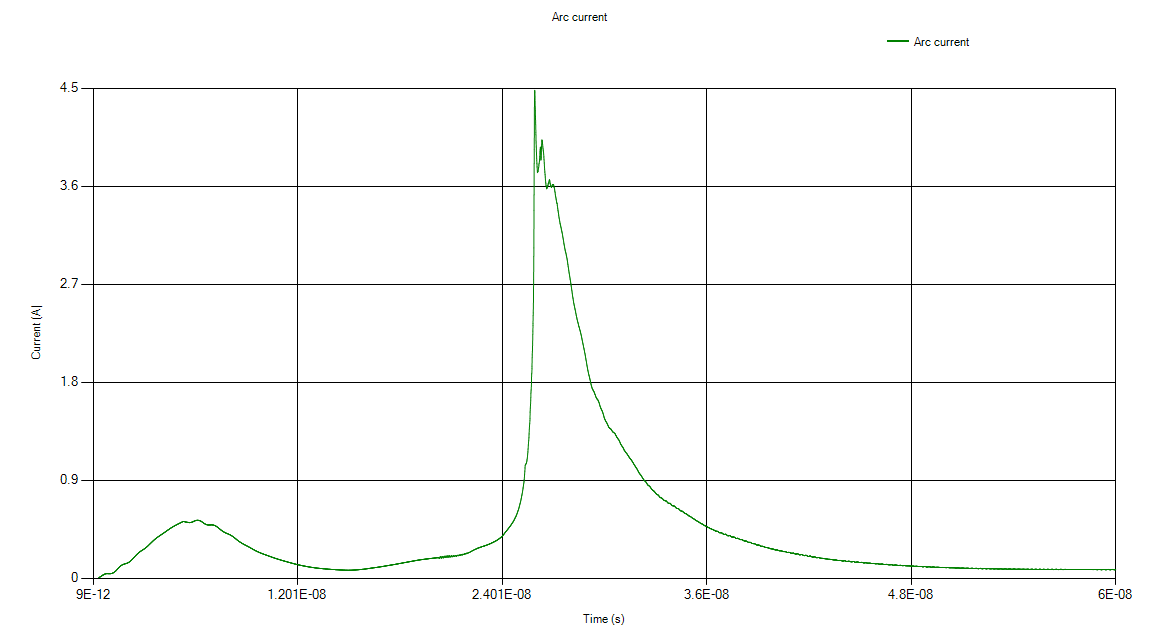 电流波形如下所示,取决于介质壳体、PCB的位置以及PCB的阻抗。