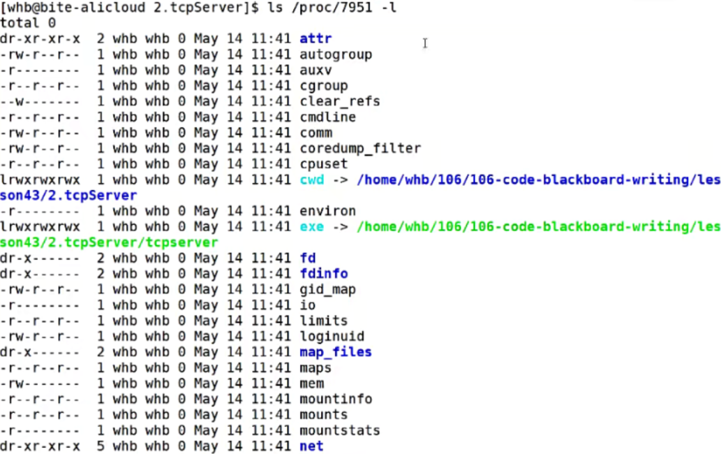 /proc/:此目录是系统进程级目录,一个伪文件系统,实际并不在硬盘当中存储,是内核映射出来的,方便你通过文件接口访问内核数据打开之后进入一个进程看,里面有个cwd,指向进程当前工作目录(Current Working Directory)的符号链接