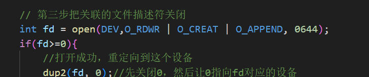 dup2(fd, 0);//先关闭0,然后让0指向fd对应的设备