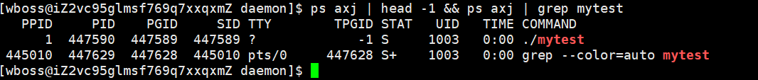 可以看到本次守护进程时第一条,第二条是我们执行ps这条命令