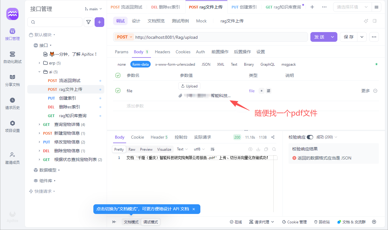* 支持通过 REST 接口上传文档并进行向量化存储,以及根据问题检索相关内容并生成回答。