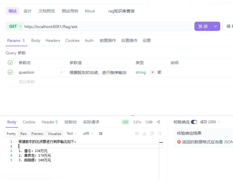 * 根据用户提出的问题从已有文档中检索相关信息,并结合大模型生成答案。