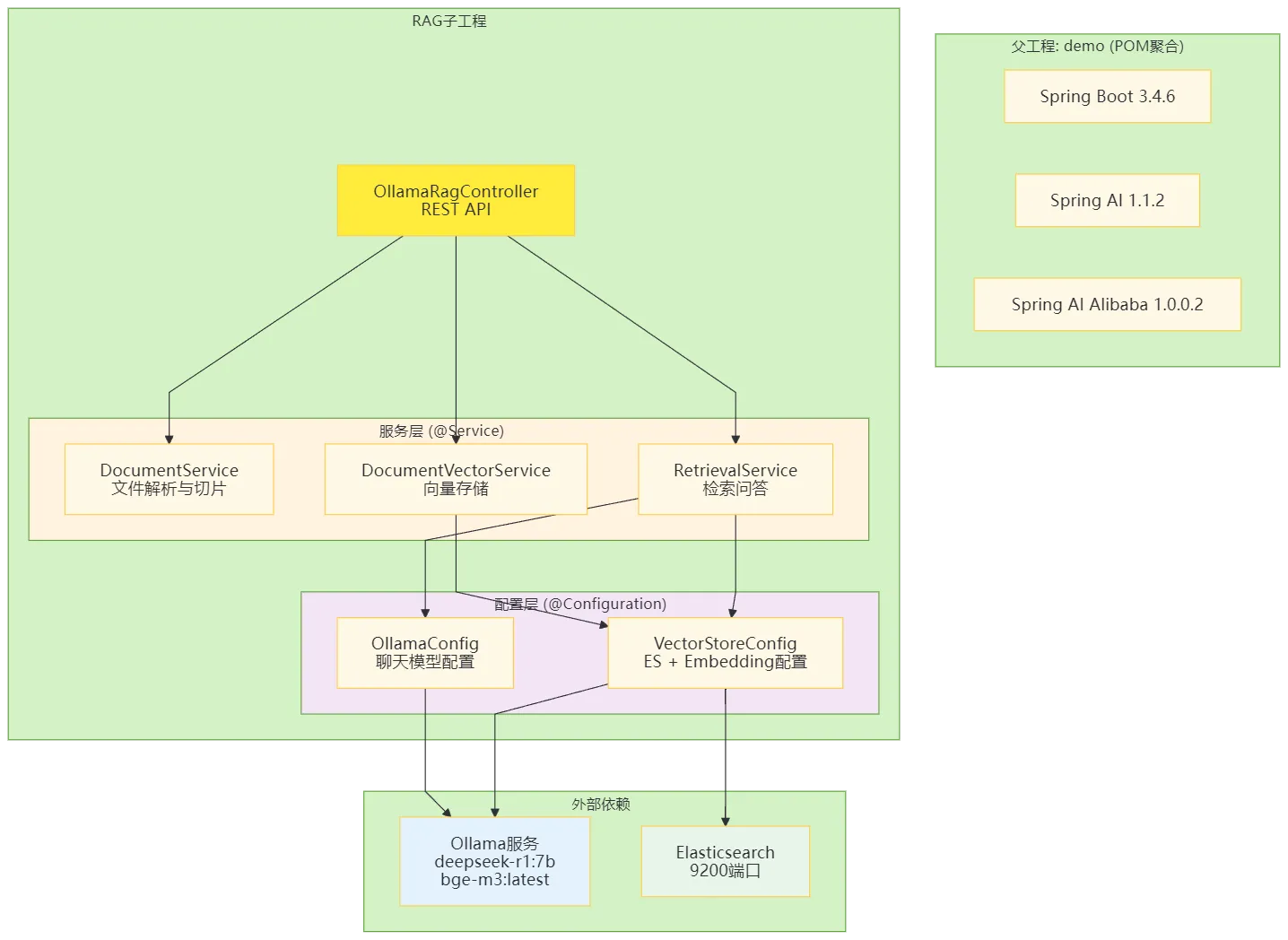 | RAG子工程 | application.yml | spring-ai-pdf-document-reader, elasticsearch-java | 8081 |