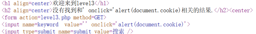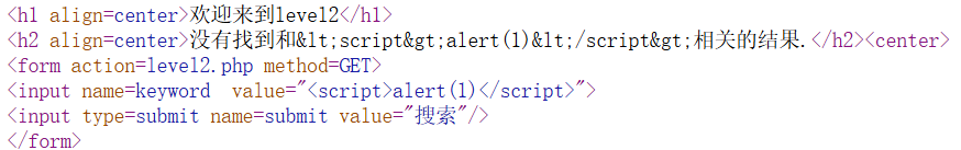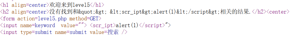源代码显示<input name=keyword value='<script>alert(1)</script>'>