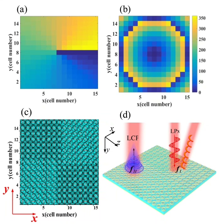 超透镜的设计总是从相位分布开始的。还记得第一次做几何相位超表面时,对着文献里的相位公式发懵的场景吗?其实只要抓住这个核心公式就够用了:φ(x,y)=2π/λ*(√(x²+y²+f²)-f)。这玩意儿看着唬人,实际操作起来用MATLAB三行代码就能搞定: