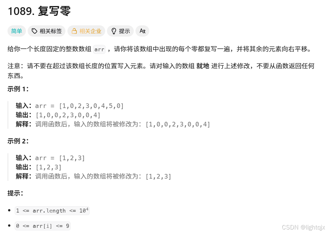 原题目链接:1089. 复写零 - 力扣(LeetCode)
