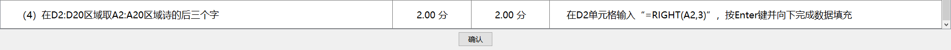 (3)在D2:D20区域取A2:A20区域诗的后三个字。