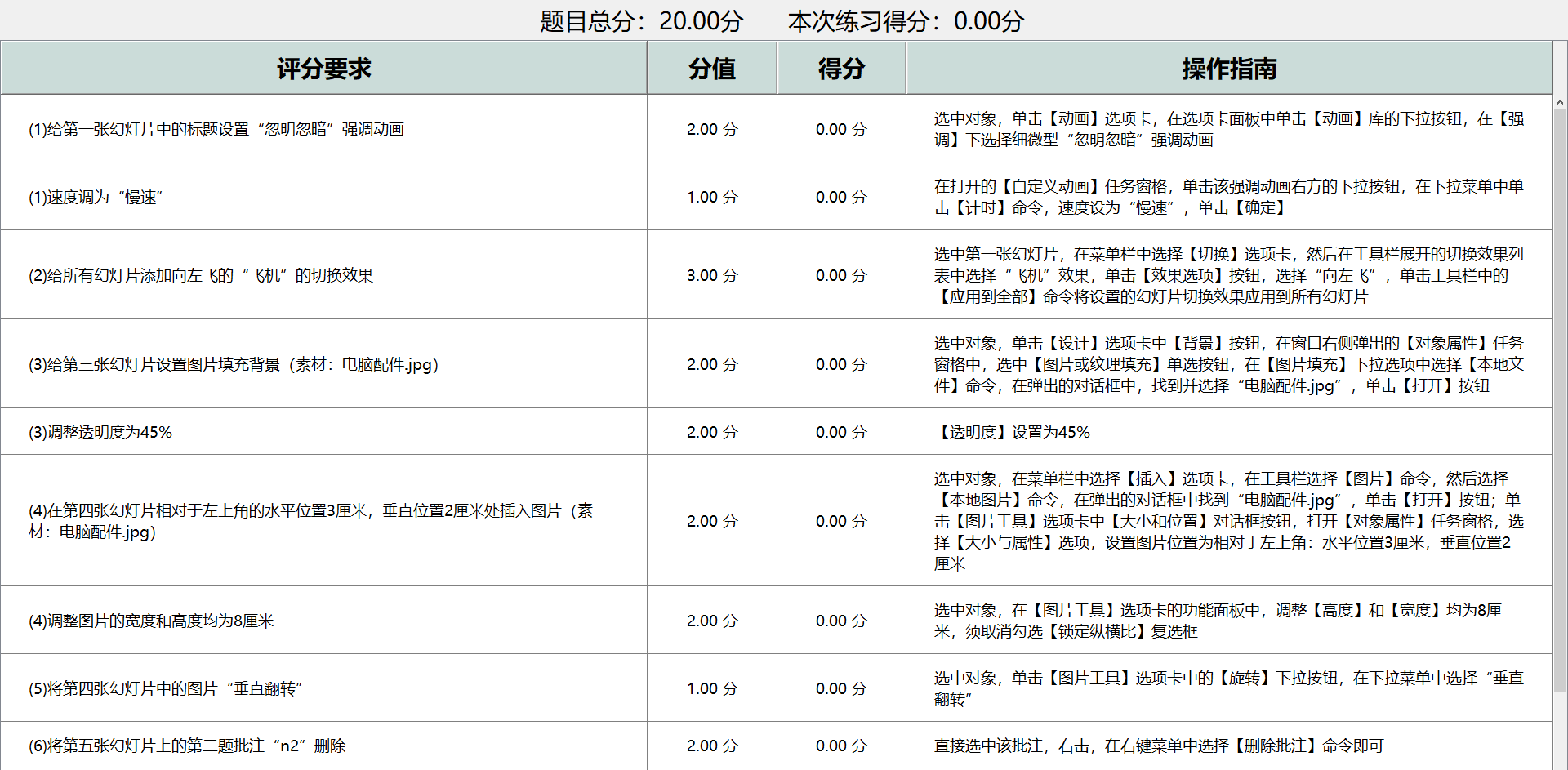 1.给第一张幻灯片中的标题设置"忽明忽暗"强调动画,速度调为"慢速"。