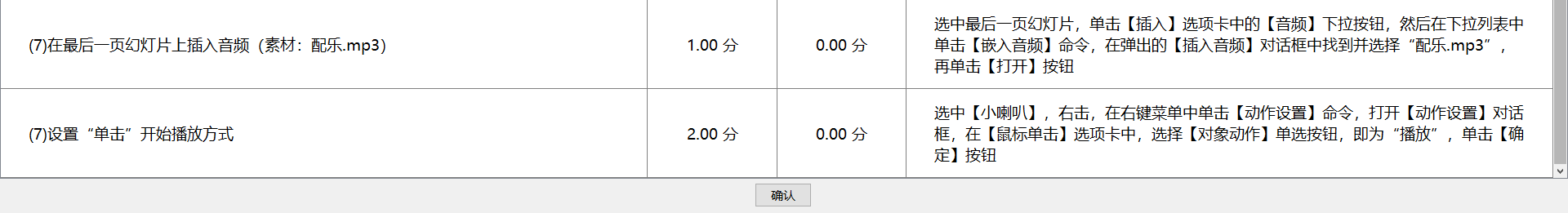 7.在最后一页幻灯片上插入音频(素材:配乐.mp3),设置"单击"开始播放方式。