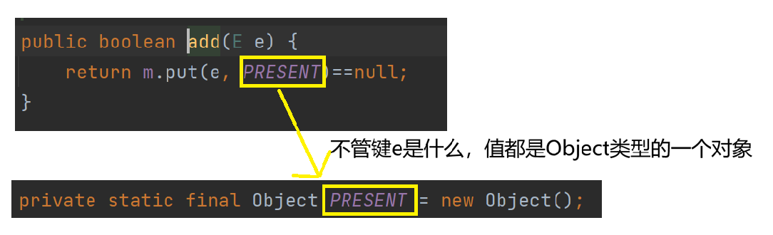 那我们继续想,既然TreeSet的底层是Map那我们在只存储key的情况下key对应的值由什么充当的?