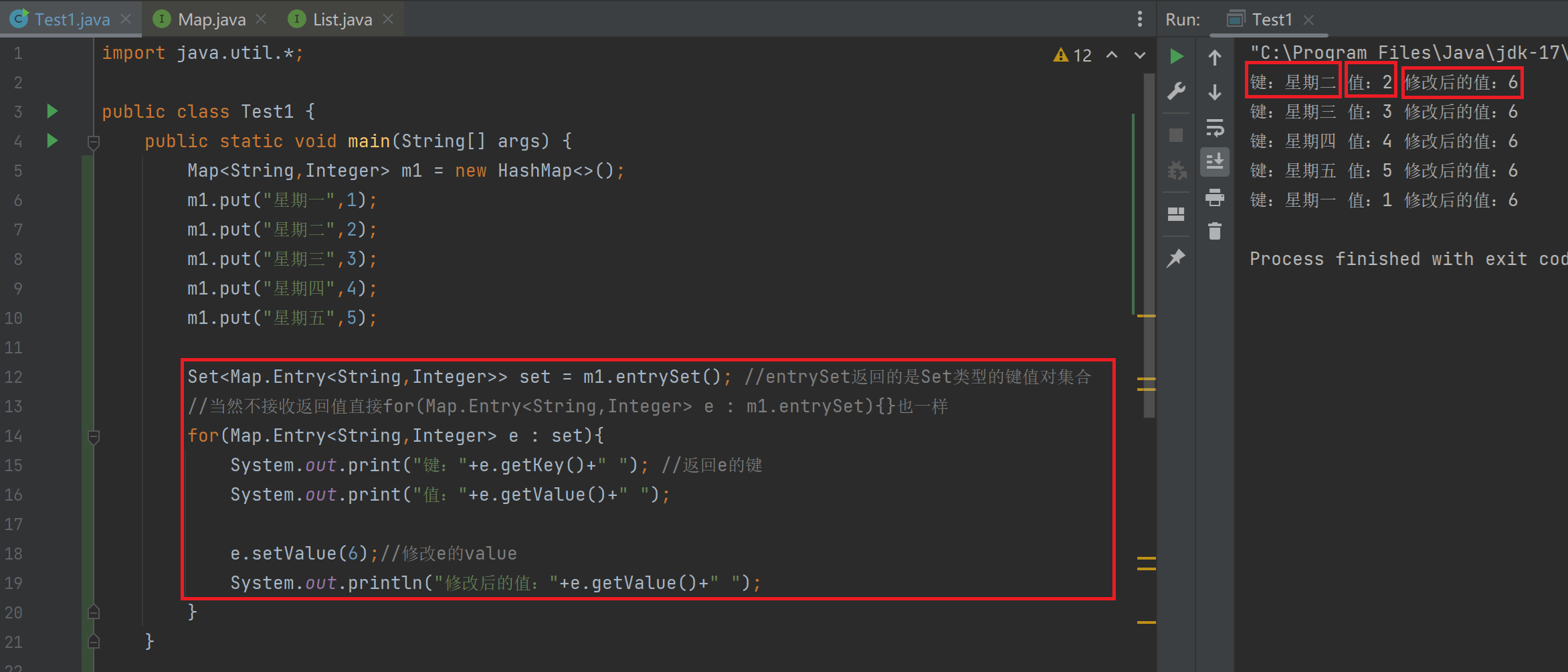 //当然不接收返回值直接for(Map.Entry<String,Integer> e : m1.entrySet){}也一样