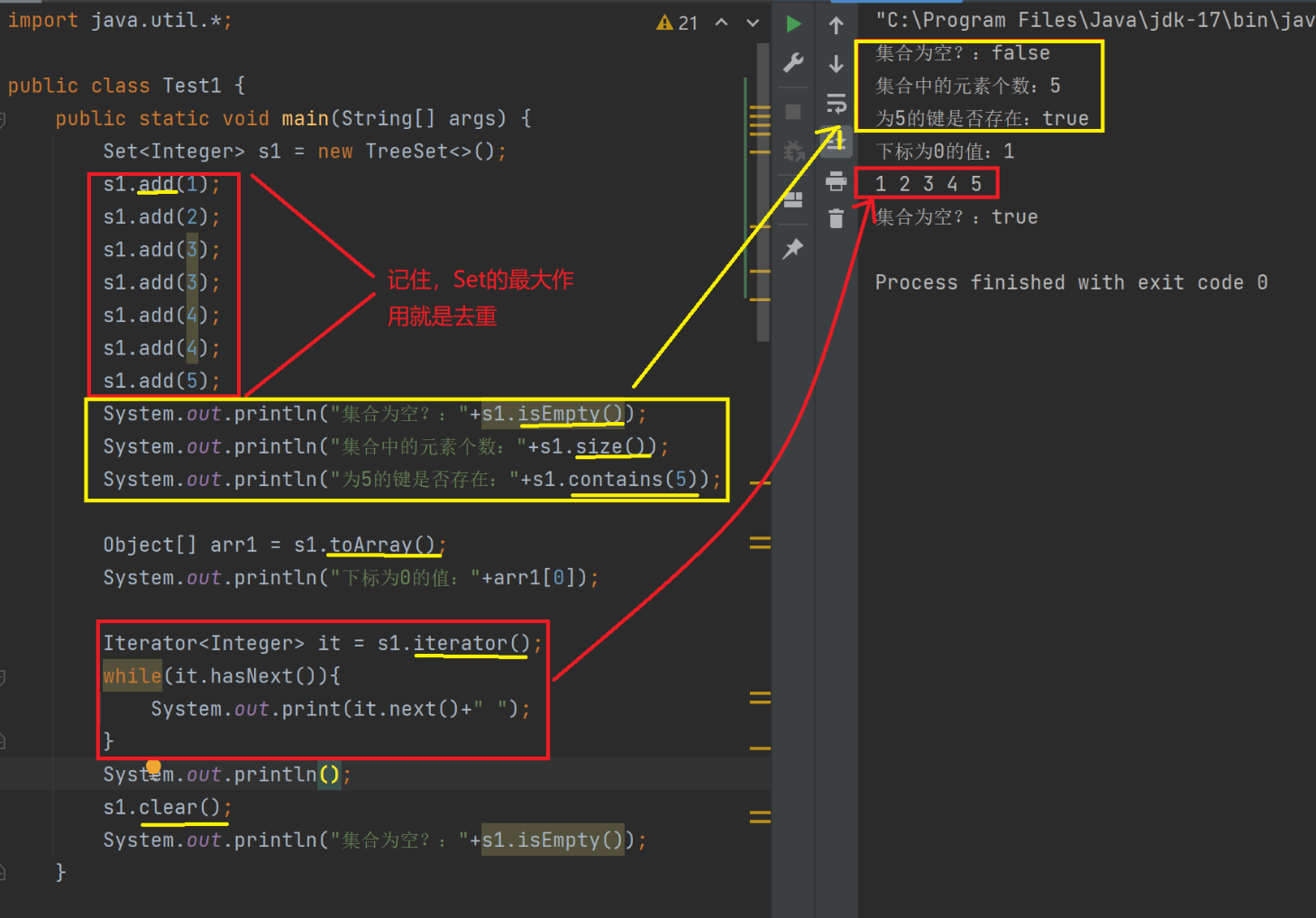| boolean isEmpty() | 检测set是否为空,空返回true,否则返回false |