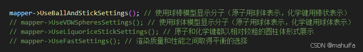 // mapper->UseLiquoriceStickSettings(); // 原子和化学键都以相对较粗的圆柱体形式展示