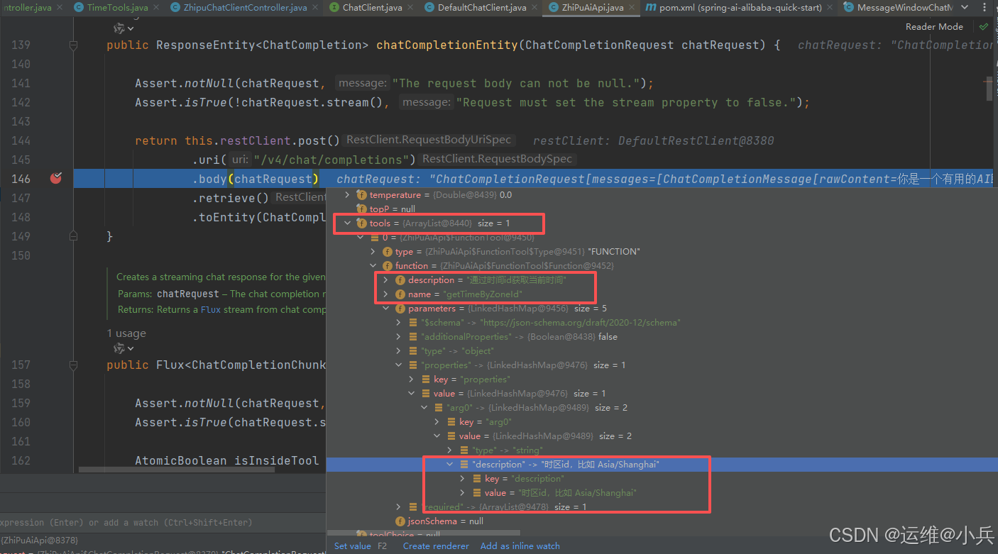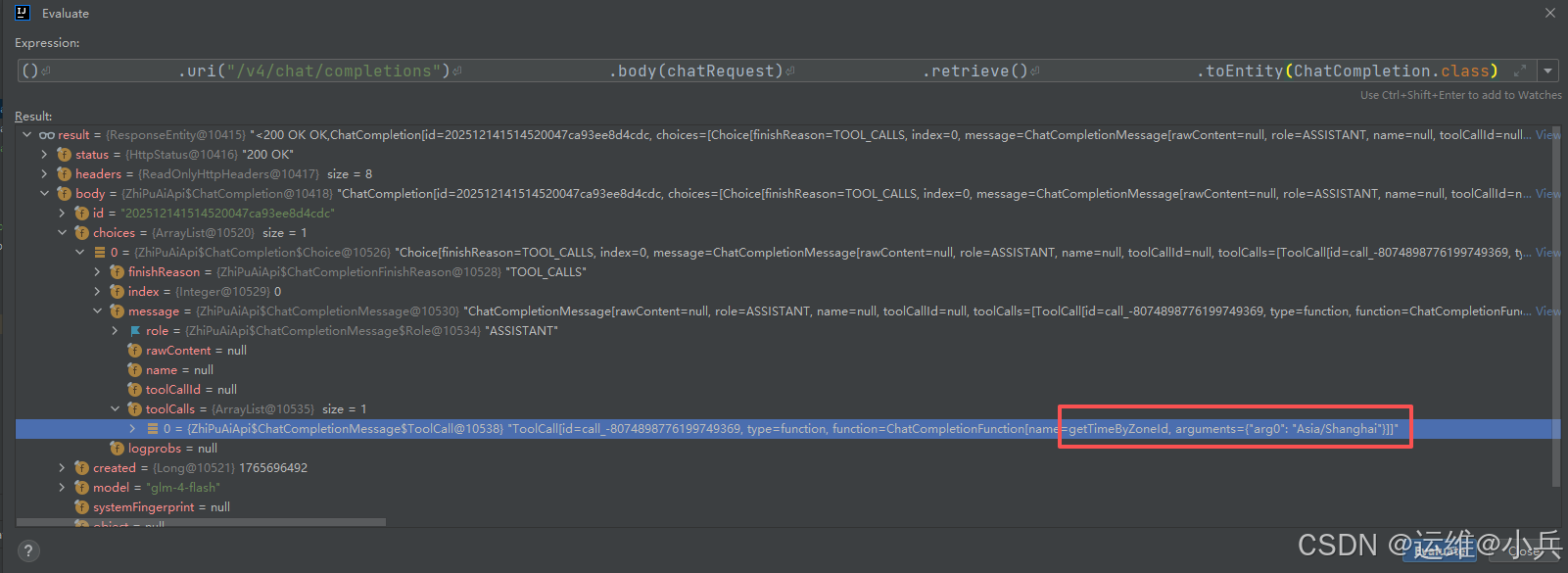 大模型返回给Spring AI的信息中,指出调用具体的工具名称及参数