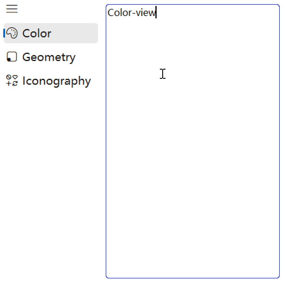 content=(("\uE790","Color"), ("\uE743","Geometry"), ("\uED58","Iconography")), # (icon, title)