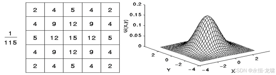 在高斯滤波中,卷积核中的值不再都是1。如图2-5所示: