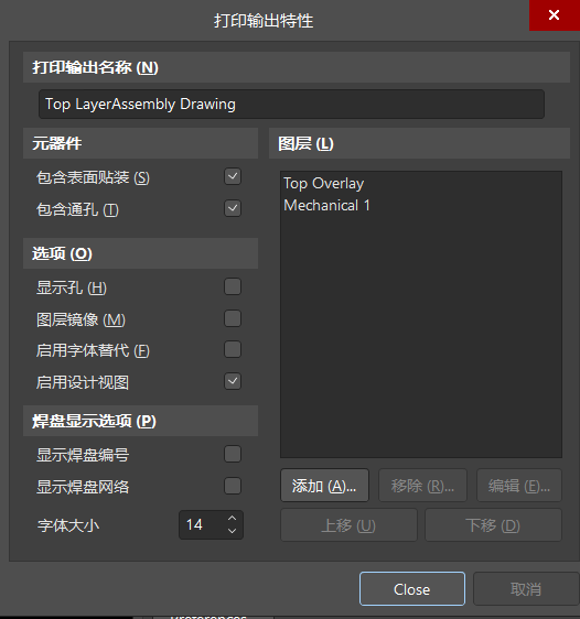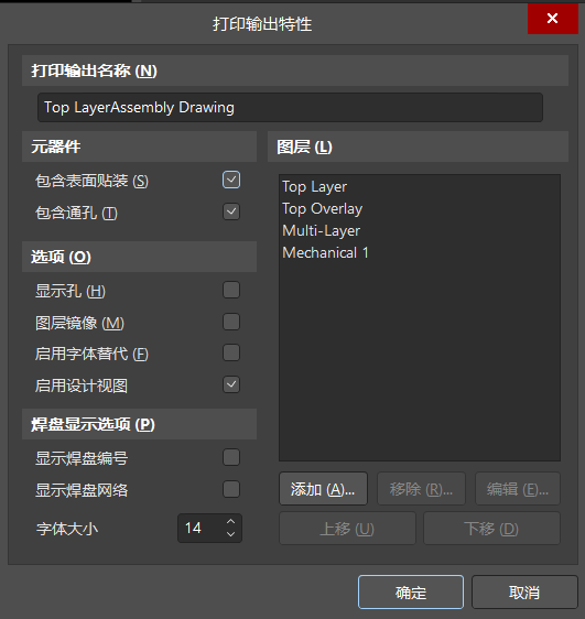 我们双击top layerassembly drawing,弹出打印输出特性,