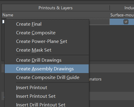 我们右键multilayer composite print,点击create assembly drawings。