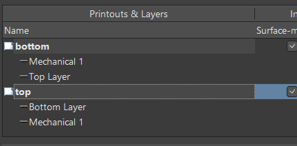 我们对顶层和底层分别创建,如下图所示。可以看到一个装配图有四个层。