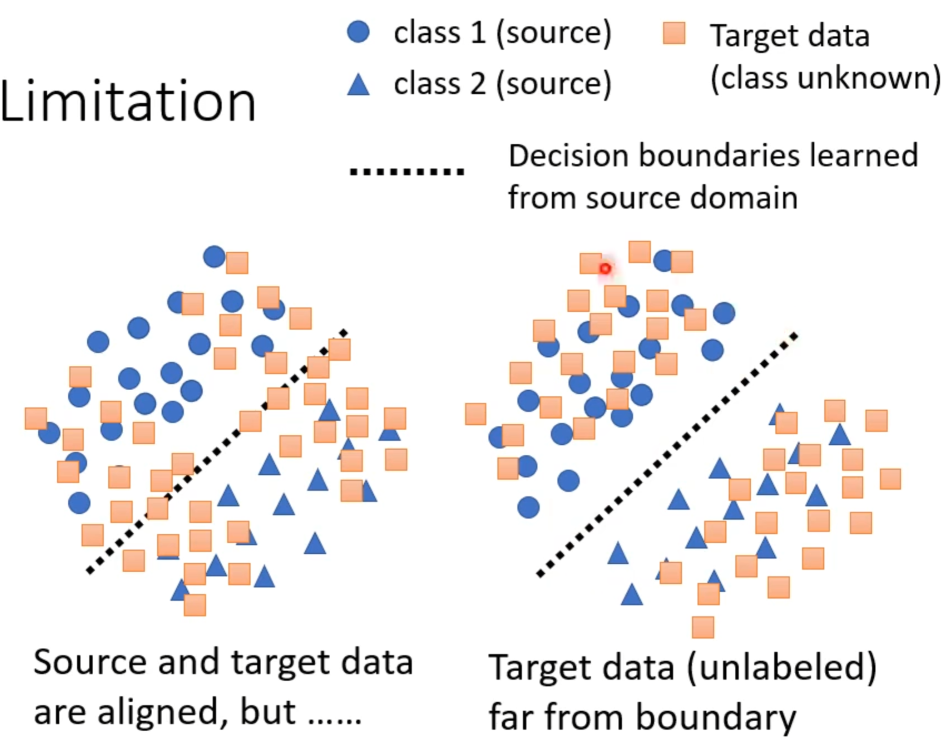 而我们这里就专注输入资料分布发生变化。后面就认为训练资料来自源领域,测试资料来自目标领域。目前情况就是有一部分有标注的训练资料来自源领域,但是现在的目标是在这些资料上训练出来的模型可以用在不一样的领域上。