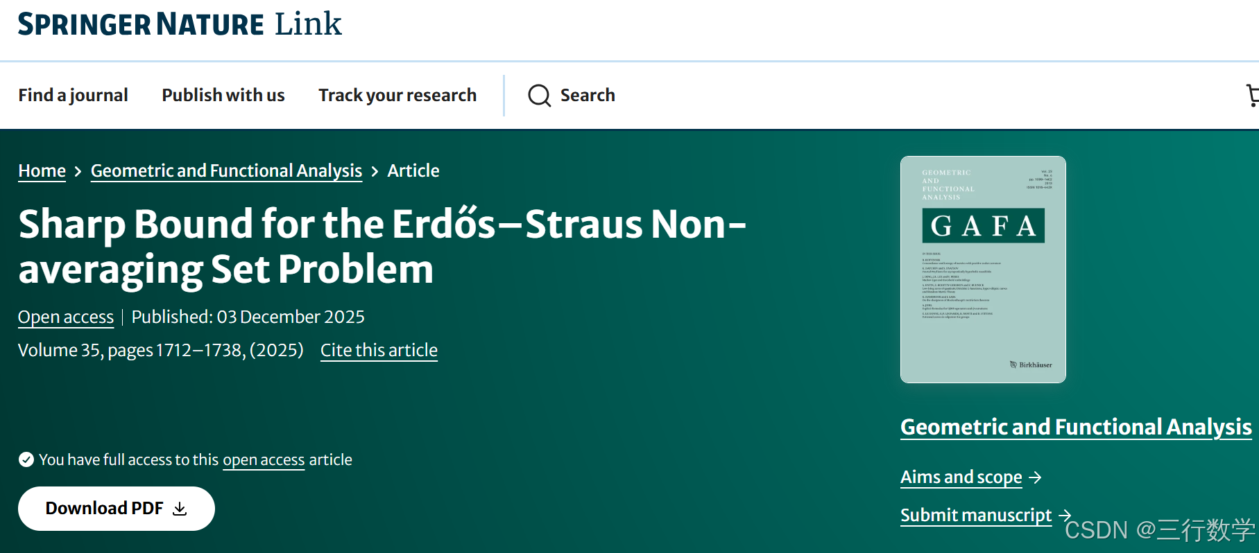2,Sharp Bound for the Erdős--Straus Non-averaging Set Problem - Geometric and Functional Analysis