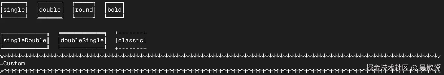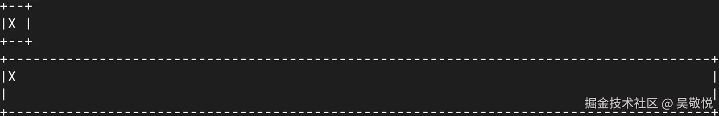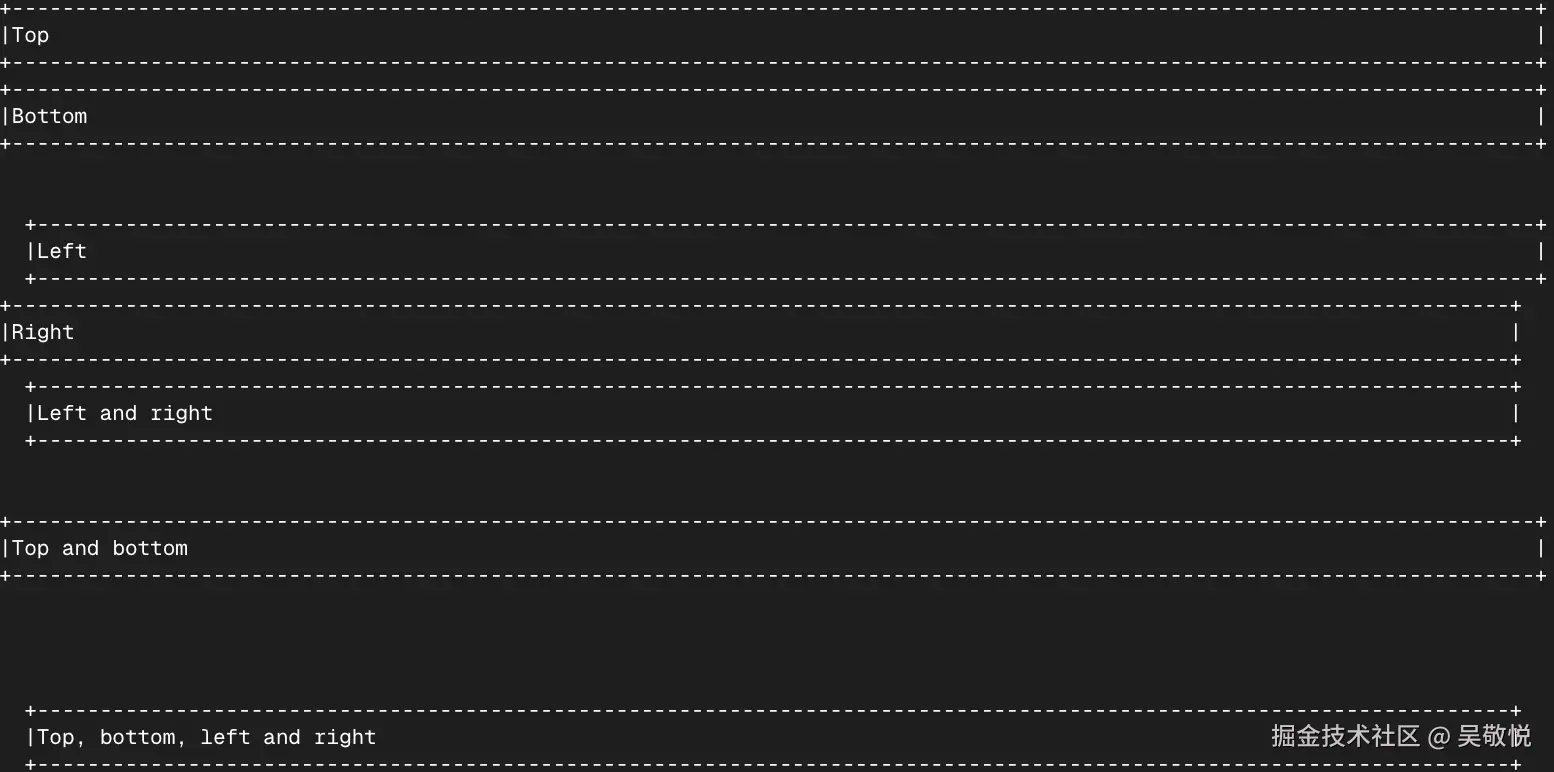 可以看到加上边框总共宽度和高度是 4 。宽度不指定的情况下是整个终端的宽度。