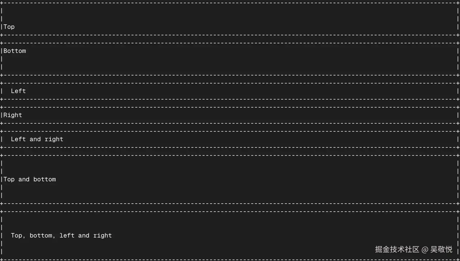 <Box marginY={2} borderStyle="classic"><Text>Top and bottom</Text></Box>