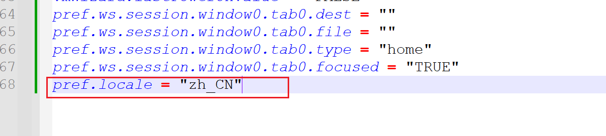 在文件的默认添加:pref.locale = "zh_CN",其实添加到那个位置都可以,通常添加在末尾或首部,自己看着方便即可