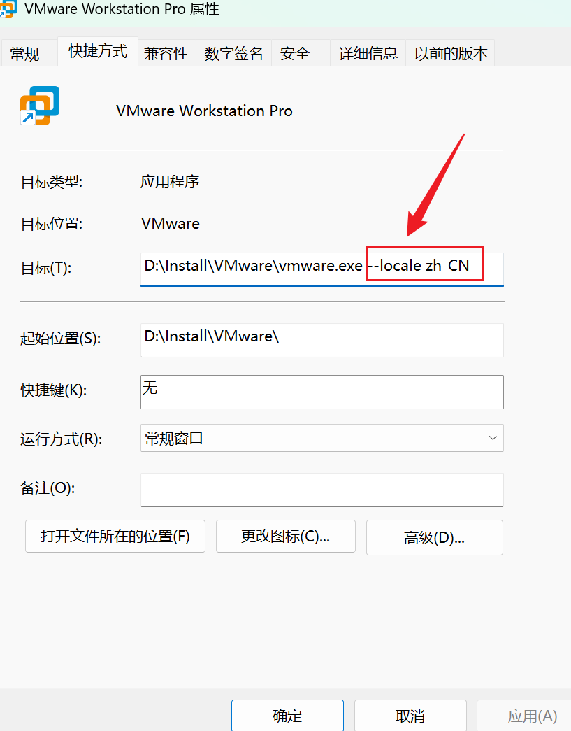 D:\Install\VMware\vmware.exe --locale zh_CN