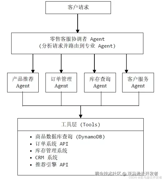 复杂的零售业务往往需要多个专业领域的知识。通过多代理架构,可以让不同的 Agent 专注于特定领域,协同完成复杂任务。