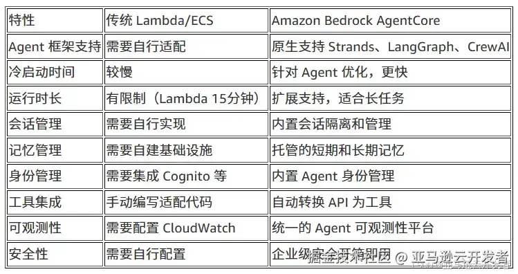 - 生态完整性:从数据存储(DynamoDB)到分析(Athena)再到部署(AgentCore),一站式解决方案