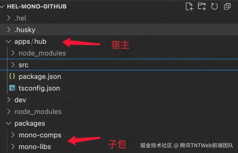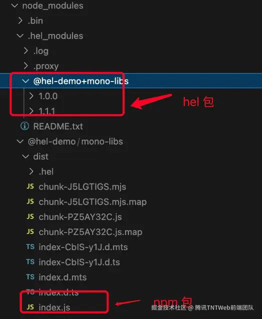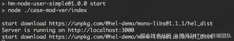 @hel-demo/mono-libs既是hel模块也是普通的npm模块,当用户不使用 hel sdk映射时则固定使用来node_modules的代码,映射后则使用node_modules/.hel_modules的代码,一行配置文件即可完成两种模式的运行切换,是否采用微模块架构完全由用户决定。