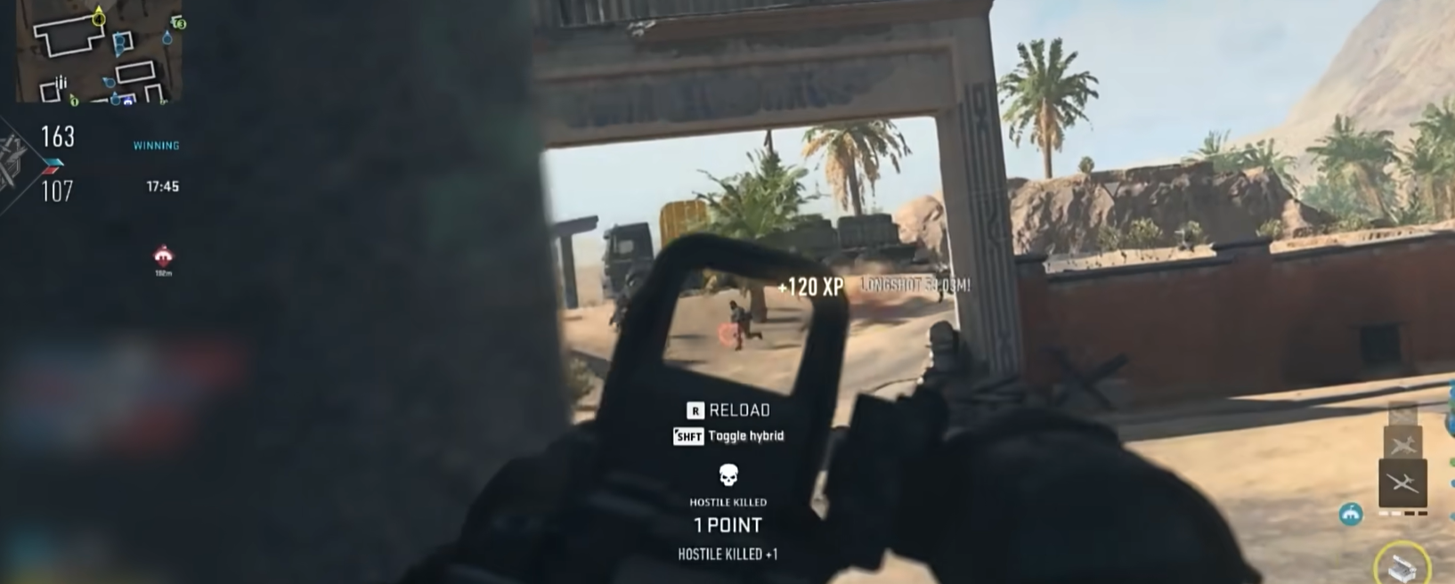 在很多FPS游戏中都有出现全息瞄准镜的身影,如下图。