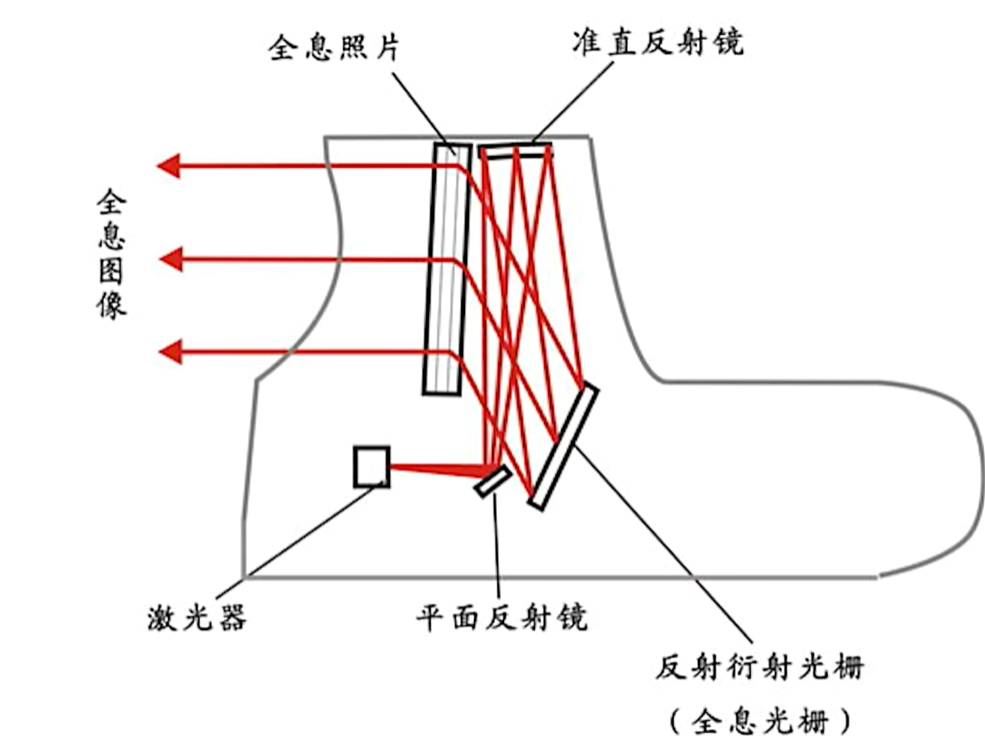 在之前制作的Unity FPS游戏中,引入了具有全息瞄准器的ACR步枪。全息瞄准镜(Holographic Sight)是一种利用激光全息衍射技术生成瞄准分划的先进光学瞄具。它以其独特的瞄准方式、快速的目标锁定能力和出色的环境适应性,在军事、执法乃至竞技射击领域都备受青睐。全息瞄准器的最大特点是无视差,由于分划是作为平行光进入眼睛的,无论你的眼睛在目镜后的什么位置观察(只要还能看到分划),分划标记相对于目标的位置都是固定的。全息瞄准镜的工作原理如下图。
